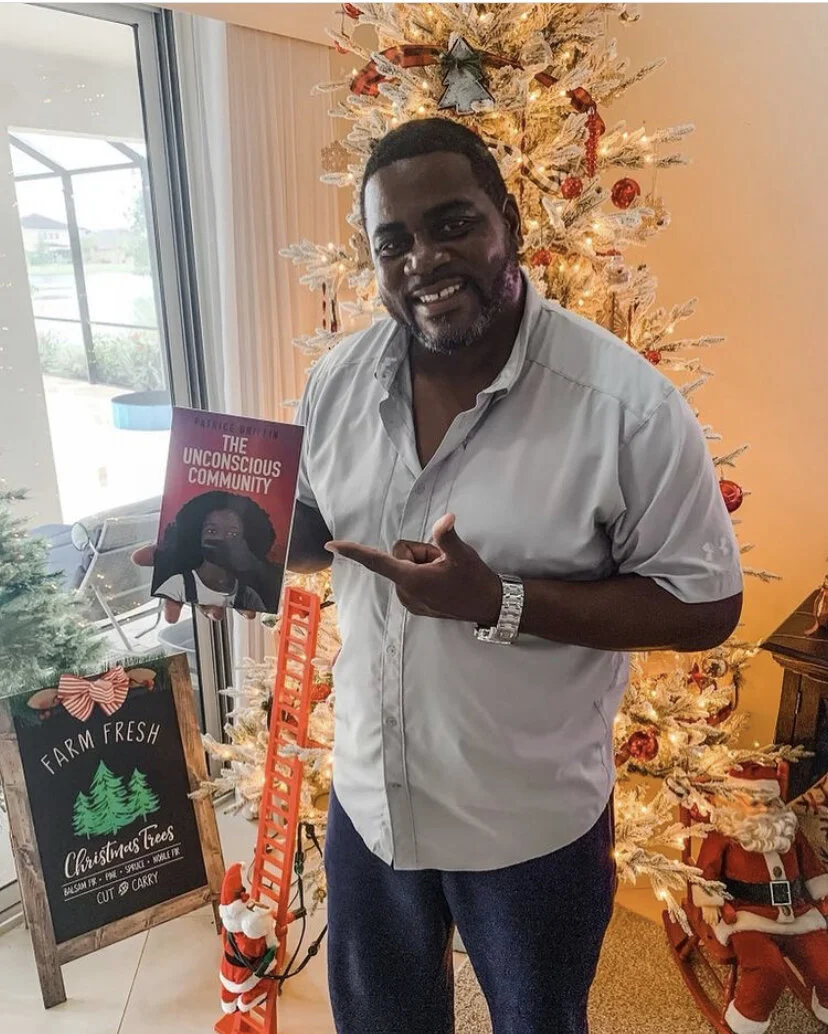 Five-time Super Bowl Champion, NFL Coach, and former linebacker Thomas “Pepper” Johnson with Patrice’s book, The Unconscious Community.